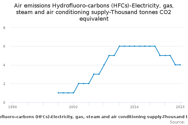 Download this time seriesAir emissions Hydrofluoro-carbons (HFCs)-Electricity, gas, steam and air conditioning supply-Thousand tonnes CO2 equivalent