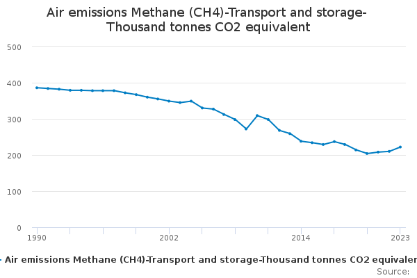 Download this time seriesAir emissions Methane (CH4)-Transport and storage-Thousand tonnes CO2 equivalent