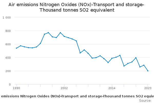Download this time seriesAir emissions Nitrogen Oxides (NOx)-Transport and storage-Thousand tonnes SO2 equivalent
