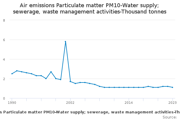 Download this time seriesAir emissions Particulate matter PM10-Water supply; sewerage, waste management activities-Thousand tonnes