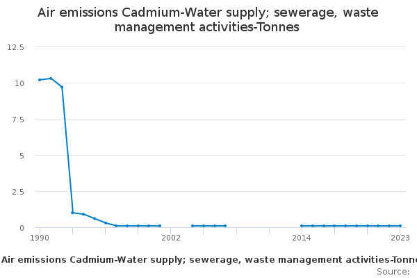 Download this time seriesAir emissions Cadmium-Water supply; sewerage, waste management activities-Tonnes