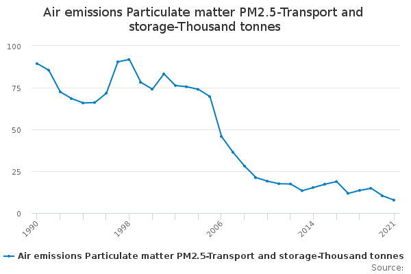 Download this time seriesAir emissions Particulate matter PM2.5-Transport and storage-Thousand tonnes