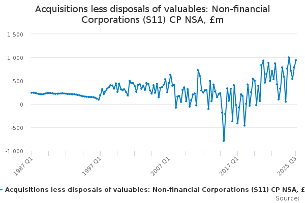 Download this time seriesAcquisitions less disposals of valuables: Non-financial Corporations (S11) CP NSA, £m