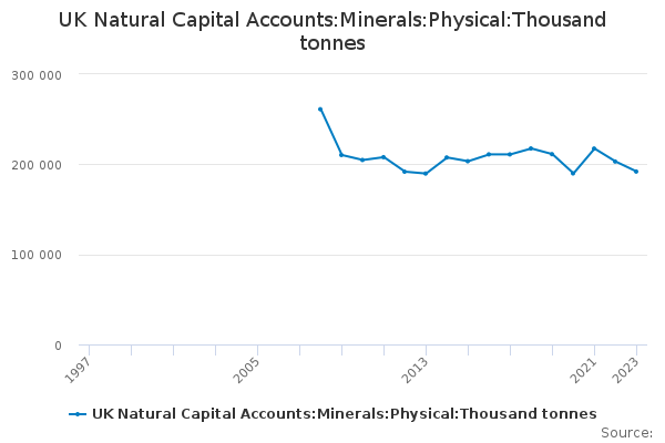 Download this time seriesUK Natural Capital Accounts:Minerals:Physical:Thousand tonnes