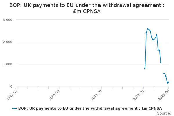 Download this time seriesBOP: UK payments to EU under the withdrawal agreement : £m CPNSA
