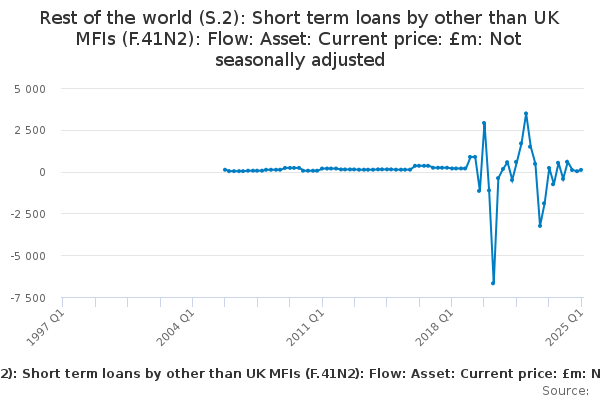 Download this time seriesRest of the world (S.2): Short term loans by other than UK MFIs (F.41N2): Flow: Asset: Current price: £m: Not seasonally adjusted