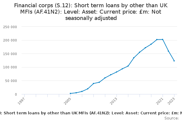 Download this time seriesFinancial corps (S.12): Short term loans by other than UK MFIs (AF.41N2): Level: Asset: Current price: £m: Not seasonally adjusted