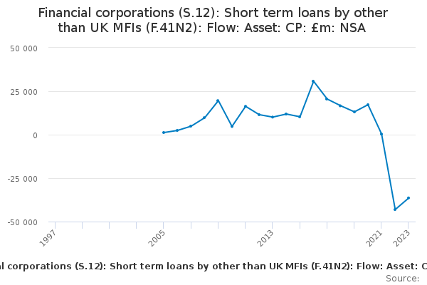 Download this time seriesFinancial corporations (S.12): Short term loans by other than UK MFIs (F.41N2): Flow: Asset: CP: £m: NSA