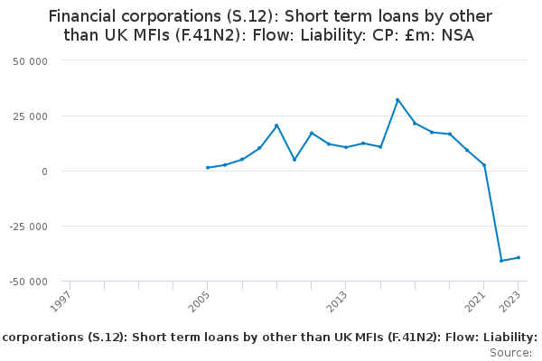 Download this time seriesFinancial corporations (S.12): Short term loans by other than UK MFIs (F.41N2): Flow: Liability: CP: £m: NSA