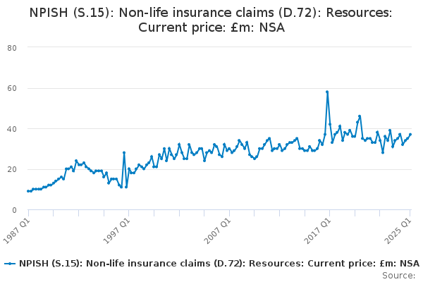 Download this time seriesNPISH (S.15): Non-life insurance claims (D.72): Resources: Current price: £m: NSA