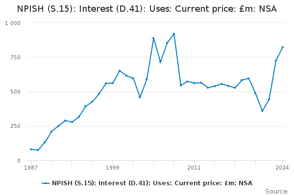 Download this time seriesNPISH (S.15): Interest (D.41): Uses: Current price: £m: NSA