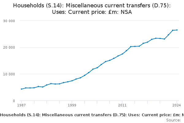 Download this time seriesHouseholds (S.14): Miscellaneous current transfers (D.75): Uses: Current price: £m: NSA