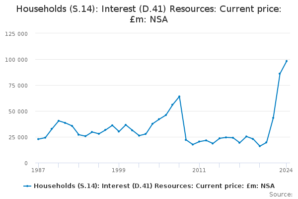 Download this time seriesHouseholds (S.14): Interest (D.41) Resources: Current price: £m: NSA