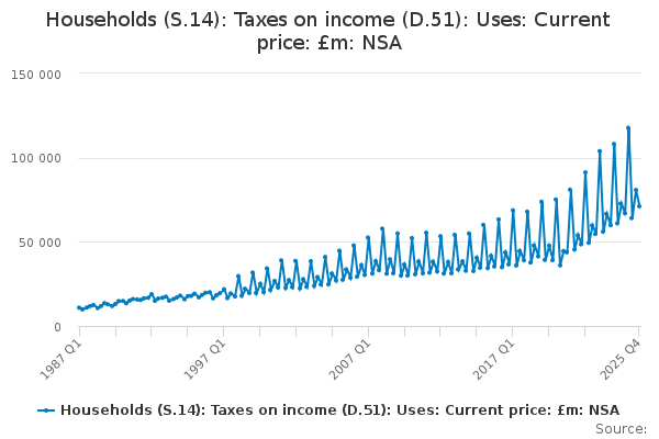 Download this time seriesHouseholds (S.14): Taxes on income (D.51): Uses: Current price: £m: NSA