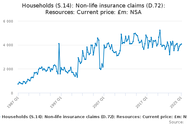 Download this time seriesHouseholds (S.14): Non-life insurance claims (D.72): Resources: Current price: £m: NSA