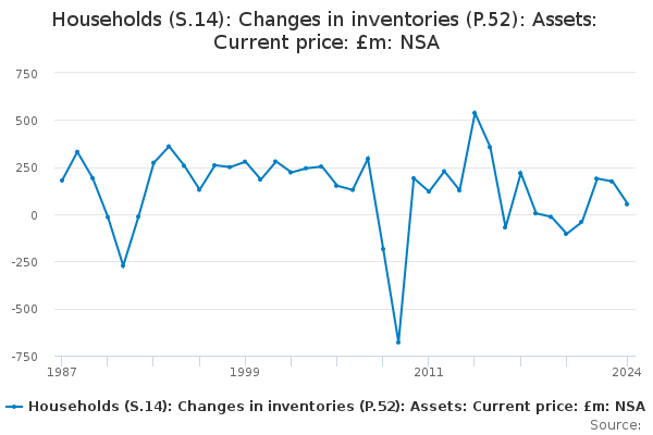 Download this time seriesHouseholds (S.14): Changes in inventories (P.52): Assets: Current price: £m: NSA