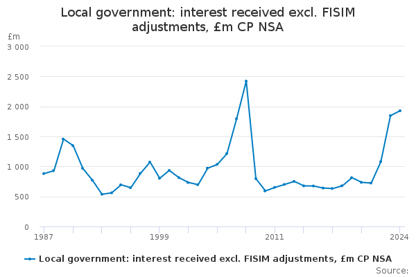 Download this time seriesLocal government: interest received excl. FISIM adjustments, £m CP NSA