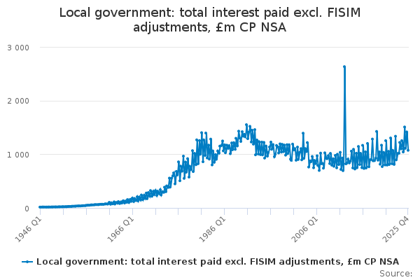 Download this time seriesLocal government: total interest paid excl. FISIM adjustments, £m CP NSA