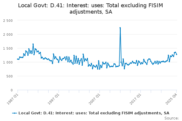 Download this time seriesLocal Govt: D.41: Interest: uses: Total excluding FISIM adjustments, SA