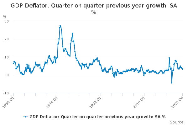 Download this time seriesGDP Deflator: Quarter on quarter previous year growth: SA %