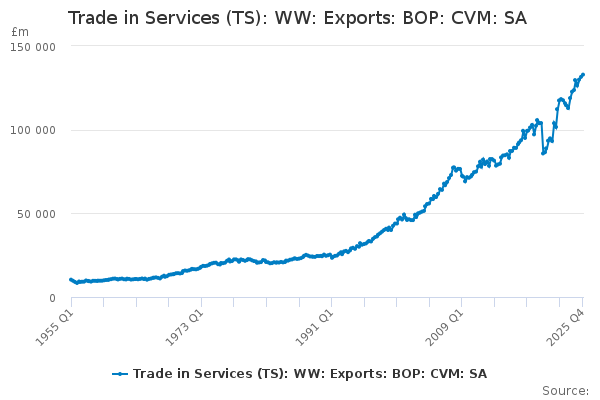 Download this time seriesTrade in Services (TS): WW: Exports: BOP: CVM: SA