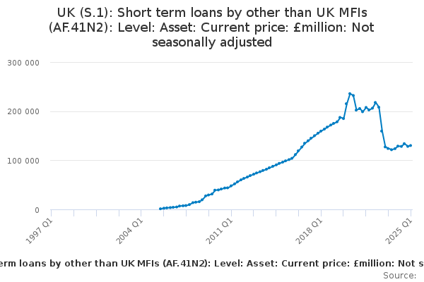 Download this time seriesUK (S.1): Short term loans by other than UK MFIs (AF.41N2): Level: Asset: Current price: £million: Not seasonally adjusted