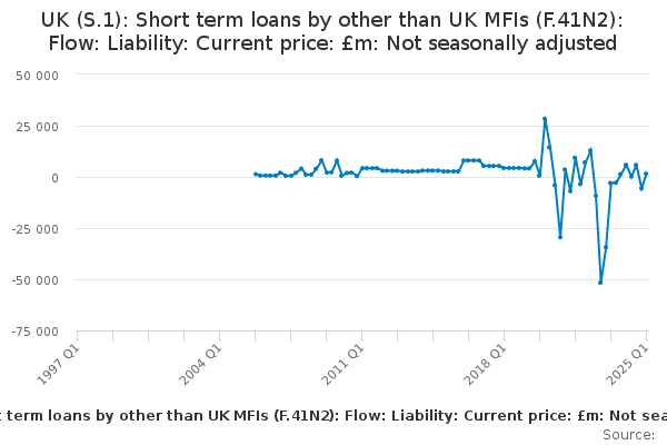 Download this time seriesUK (S.1): Short term loans by other than UK MFIs (F.41N2): Flow: Liability: Current price: £m: Not seasonally adjusted