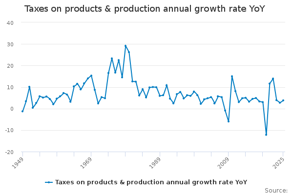 Download this time seriesTaxes on products & production annual growth rate YoY