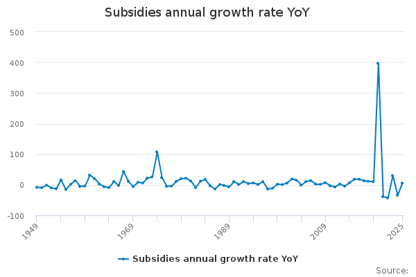 Download this time seriesSubsidies annual growth rate YoY