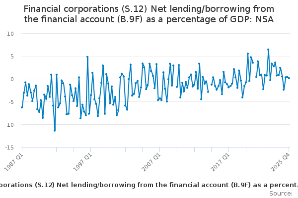 Download this time seriesFinancial corporations (S.12) Net lending/borrowing from the financial account (B.9F) as a percentage of GDP: NSA
