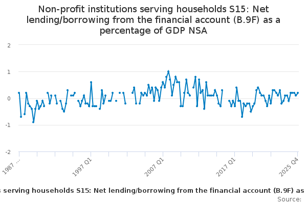 Download this time seriesNon-profit institutions serving households S15: Net lending/borrowing from the financial account (B.9F) as a percentage of GDP NSA