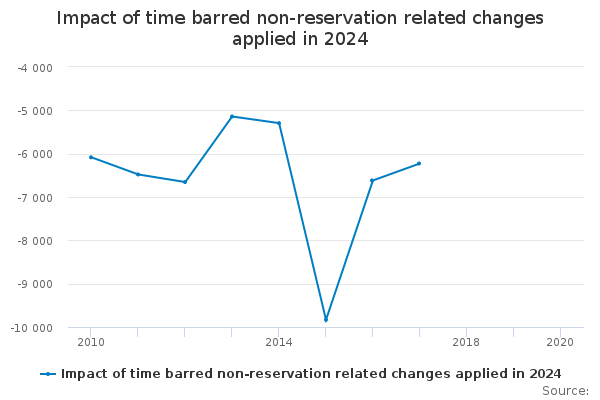 Download this time seriesImpact of time barred non-reservation related changes applied in 2024