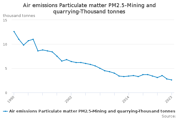 Download this time seriesAir emissions Particulate matter PM2.5-Mining and quarrying-Thousand tonnes