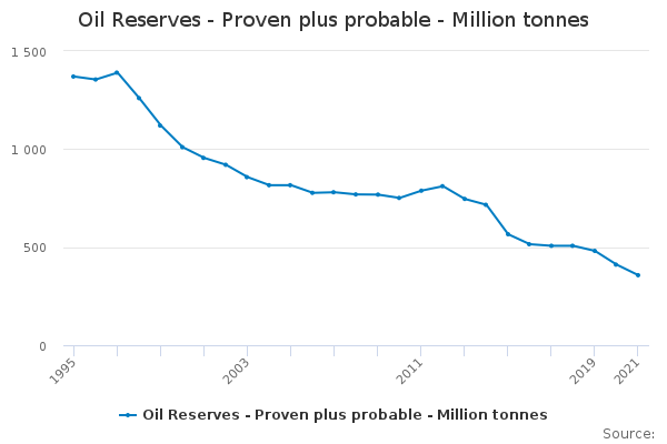 Download this time seriesOil Reserves - Proven plus probable - Million tonnes