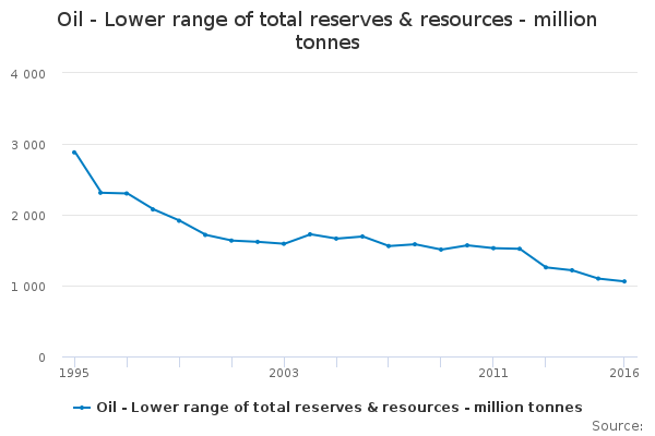 Download this time seriesOil - Lower range of total reserves & resources - million tonnes