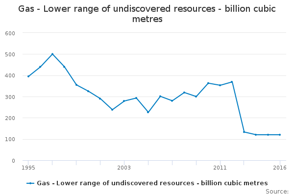 Download this time seriesGas - Lower range of undiscovered resources - billion cubic metres