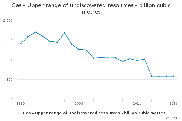Download this time seriesGas - Upper range of undiscovered resources - billion cubic metres