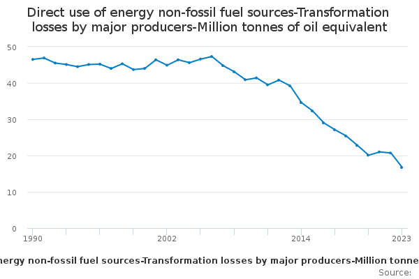 Download this time seriesDirect use of energy non-fossil fuel sources-Transformation losses by major producers-Million tonnes of oil equivalent