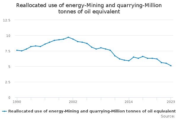 Download this time seriesReallocated use of energy-Mining and quarrying-Million tonnes of oil equivalent
