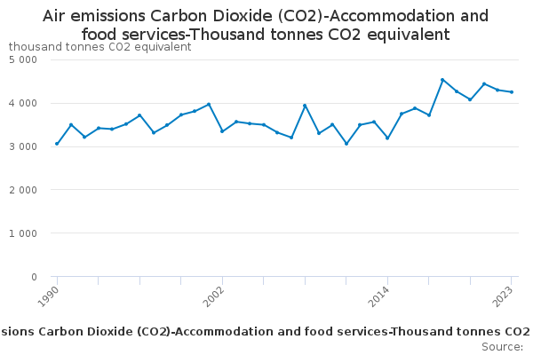 Download this time seriesAir emissions Carbon Dioxide (CO2)-Accommodation and food services-Thousand tonnes CO2 equivalent