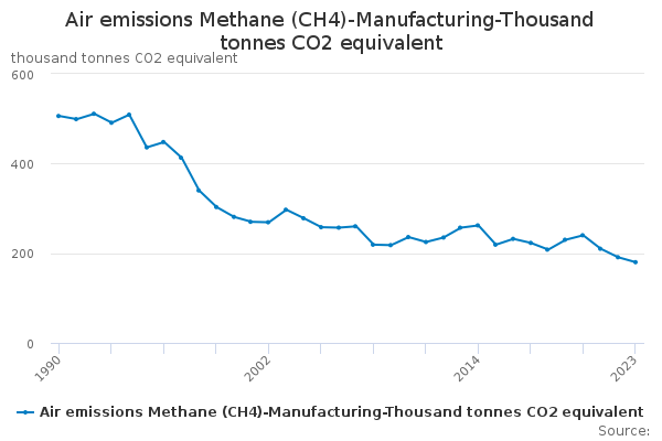 Download this time seriesAir emissions Methane (CH4)-Manufacturing-Thousand tonnes CO2 equivalent