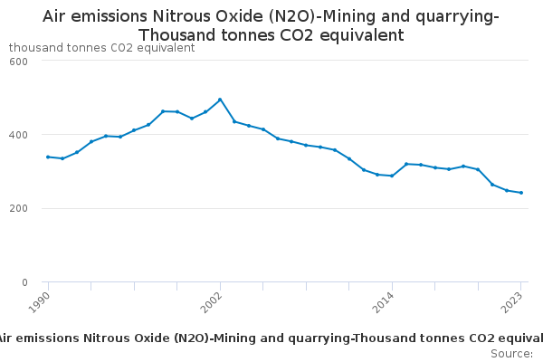 Download this time seriesAir emissions Nitrous Oxide (N2O)-Mining and quarrying-Thousand tonnes CO2 equivalent