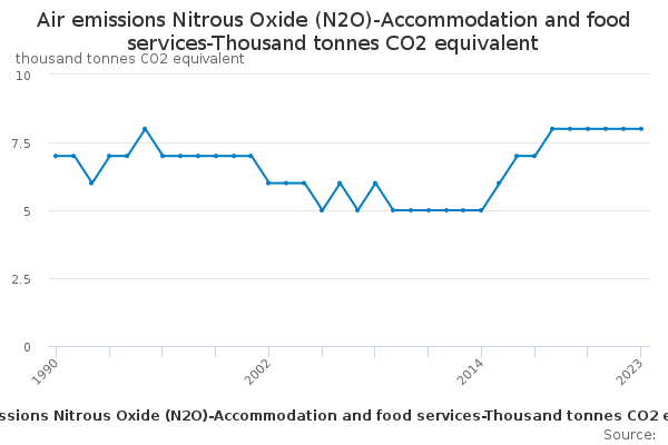 Download this time seriesAir emissions Nitrous Oxide (N2O)-Accommodation and food services-Thousand tonnes CO2 equivalent