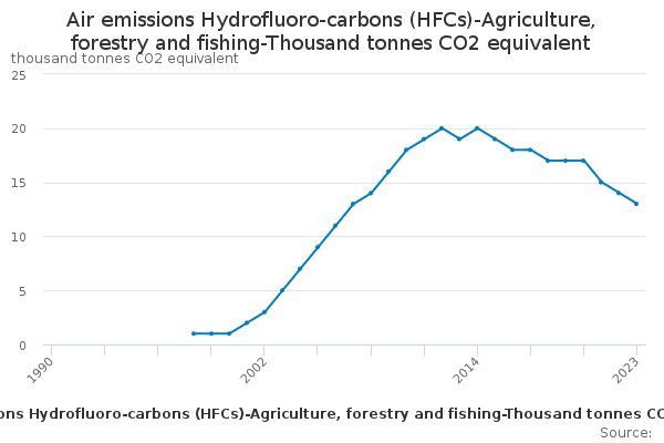 Download this time seriesAir emissions Hydrofluoro-carbons (HFCs)-Agriculture, forestry and fishing-Thousand tonnes CO2 equivalent