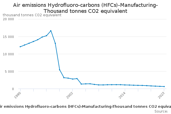 Download this time seriesAir emissions Hydrofluoro-carbons (HFCs)-Manufacturing-Thousand tonnes CO2 equivalent