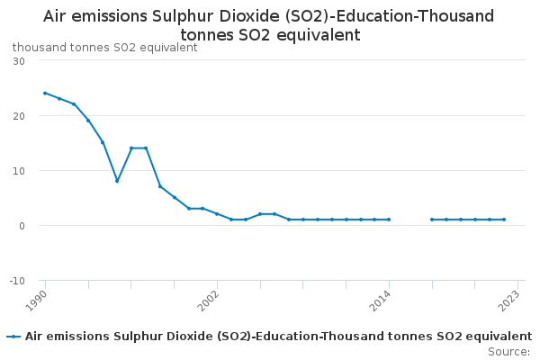 Download this time seriesAir emissions Sulphur Dioxide (SO2)-Education-Thousand tonnes SO2 equivalent