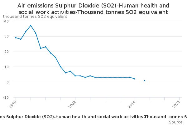 Download this time seriesAir emissions Sulphur Dioxide (SO2)-Human health and social work activities-Thousand tonnes SO2 equivalent