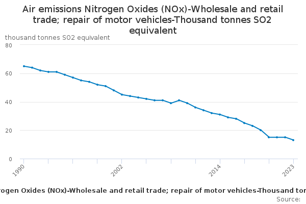 Download this time seriesAir emissions Nitrogen Oxides (NOx)-Wholesale and retail trade; repair of motor vehicles-Thousand tonnes SO2 equivalent