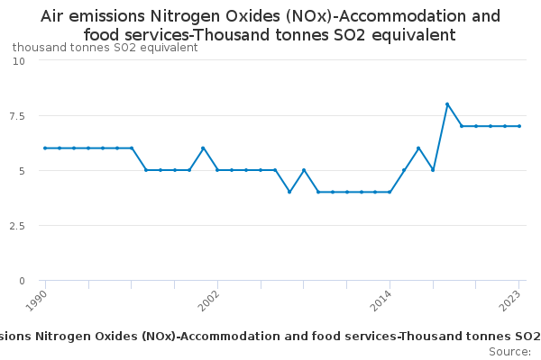 Download this time seriesAir emissions Nitrogen Oxides (NOx)-Accommodation and food services-Thousand tonnes SO2 equivalent