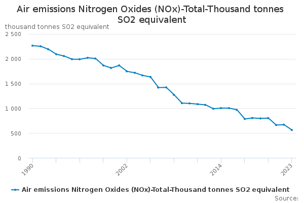 Download this time seriesAir emissions Nitrogen Oxides (NOx)-Total-Thousand tonnes SO2 equivalent